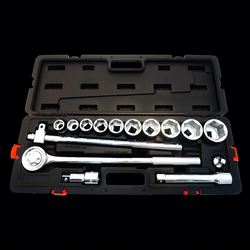 Taiwan Heavy Duty Quick Ratchet Wrench Tool Set 15pcs 3/4 Drive Cr-V Material Chrome Acabamento Customizável OEM Hard Case Impacto